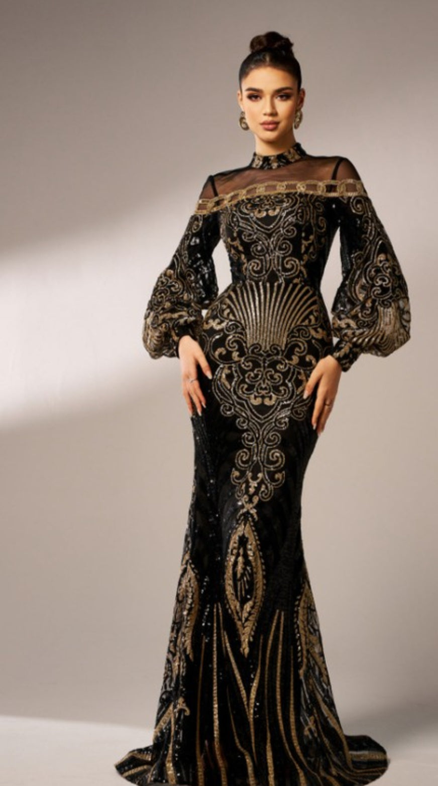 LONG SLEEVE MOCK NECK SEQUIN GOWN
