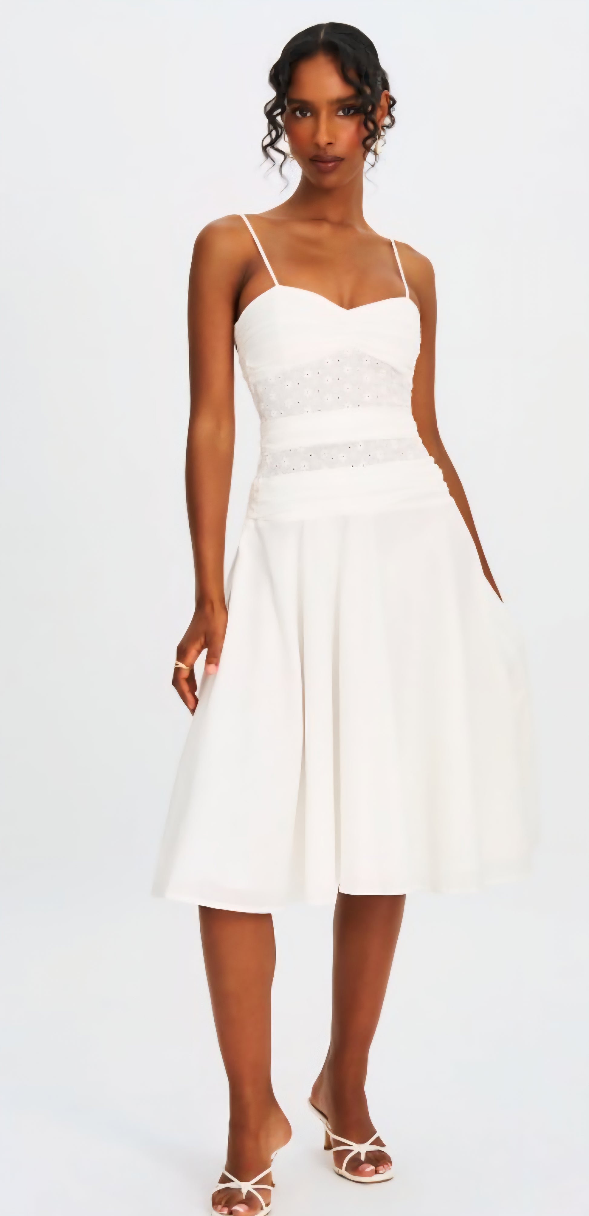 MISS CIRCLE MAELIS EYELET DROP WAIST MIDI DRESS