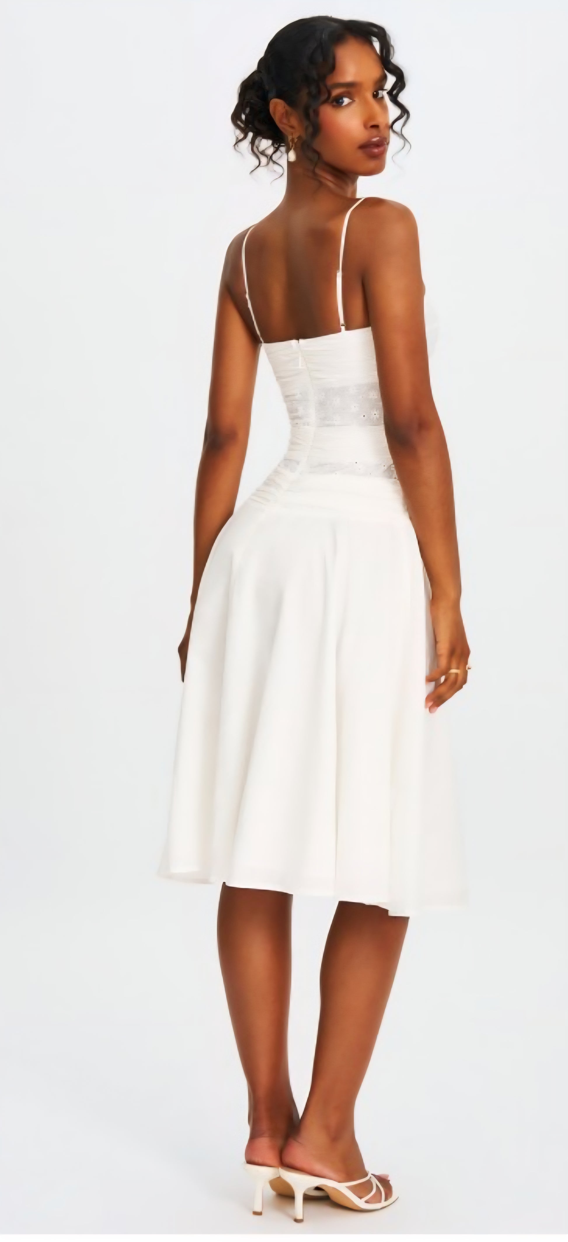 Crafted for elegance and style, the MISS CIRCLE MAELIS EYELET DROP WAIST MIDI DRESS features a timeless design and sleeveless silhouette. Perfect for any occasion, it will effortlessly elevate your wardrobe with its sophisticated charm.