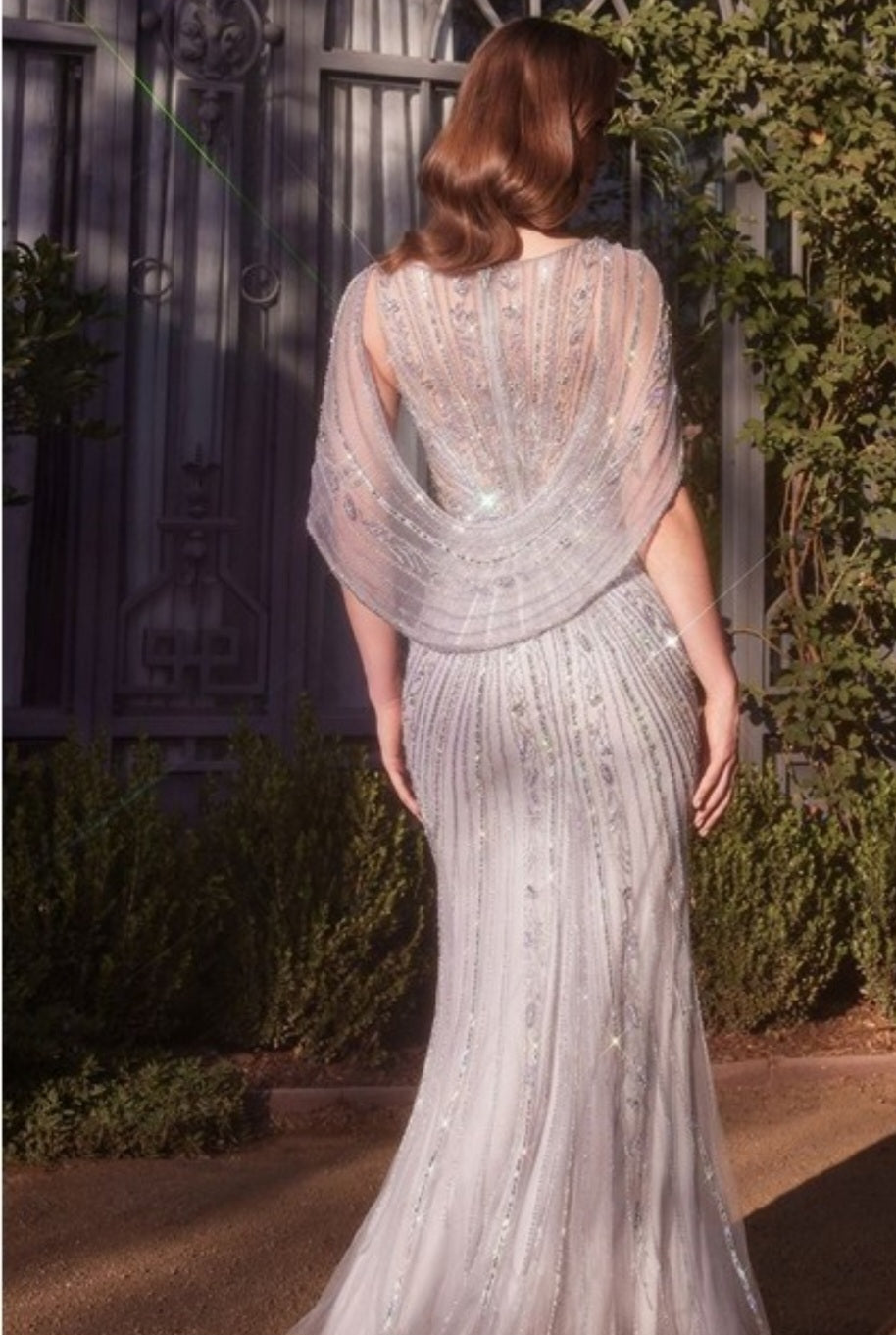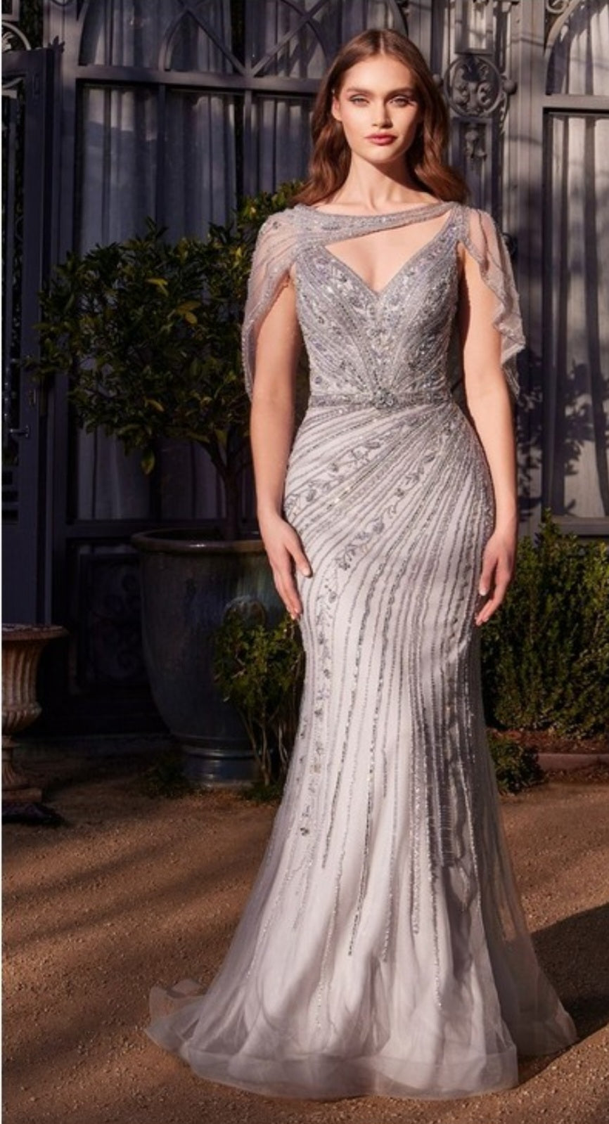 SHOULDER DRAPE CRYSTAL BEADED GOWN